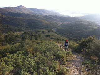 Matinada de campionat a Platja a l´apartament del David ( 06.00h), entrepà de truita, cafè, moltes peces de roba a sobre i a les 06.45 ens trobem amb el nostre taxista: el Tomàs i la seva furgo del "Equipi A". El termometre del cotxe marcant temperatures sota cero i autopista cap a LLançà. Arribem sobre les 08.00h, amb dos graus sota cero i el temps necesari per aparcar el cotxe a un dels parquings habilitats per la cursa i anar a la pl.Major a recollir dorsals, fer un últim cafetò i equipar-nos per afrontar els 21 km de la cursa amb un desnivell total de 976m.